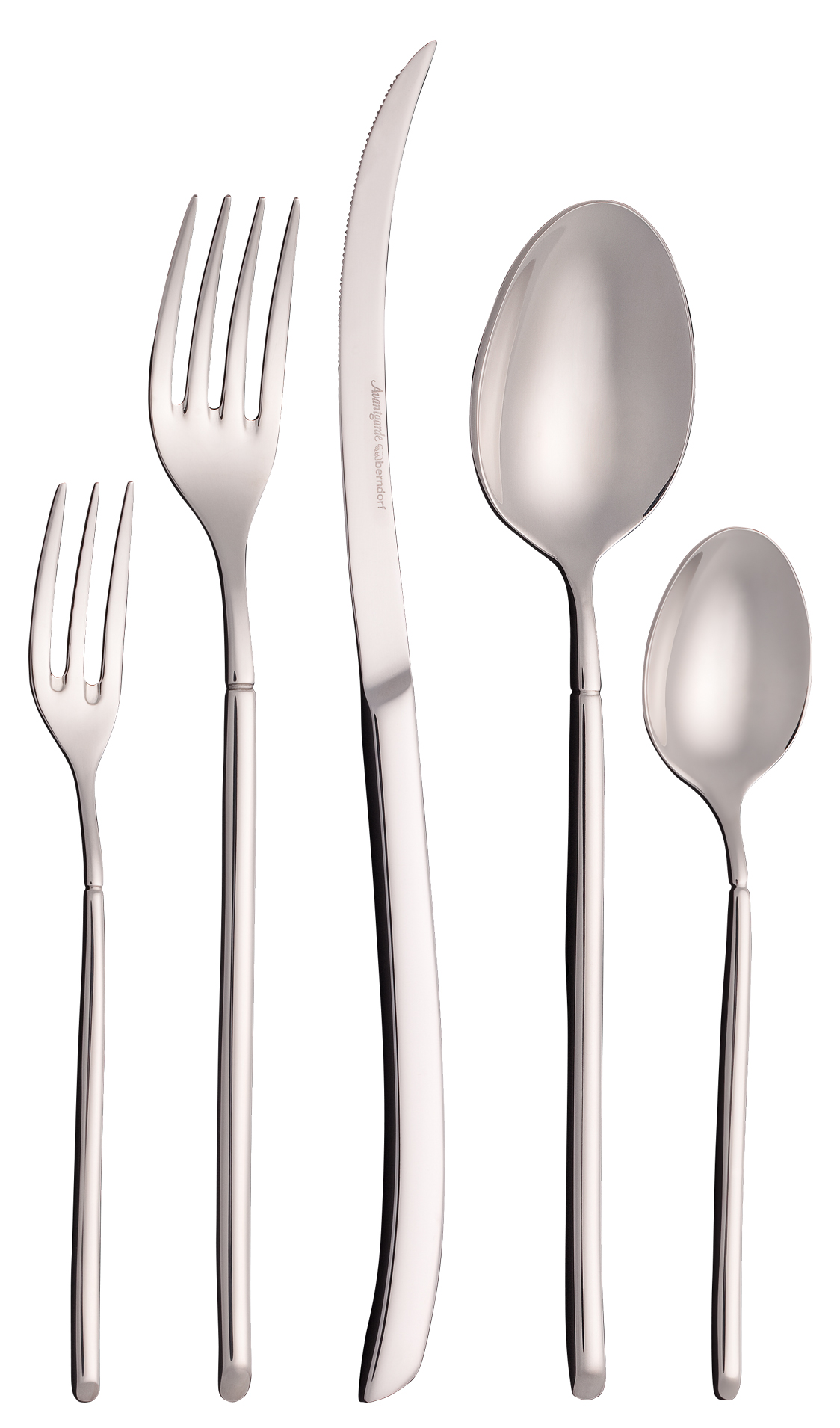 Avantgarde wurde als Topmodell des Designavantgardisten James Kawada international mehrfach prämiert. Mit klaren, modernen Formen und exklusiven, polierten sowie sandgestrahlten Materialien (versilbert oder vergoldet) sorgt dieses herausragende Designerstück für extravaganten Genuss. Als zeitloses Besteck vereint Avantgarde Klarheit und Harmonie zu einem sich immer wiederholenden Erlebnis. Die feinen, wohlgeformten Linien der ergonomischen Griffe schmiegen sich weich in die Hand und besonders der leicht geschwungene Messergriff setzt unverwechselbare Akzente. Dieses designorientierte Besteck passt sowohl zu klassischen, als auch zu modernen Porzellanservicen.
